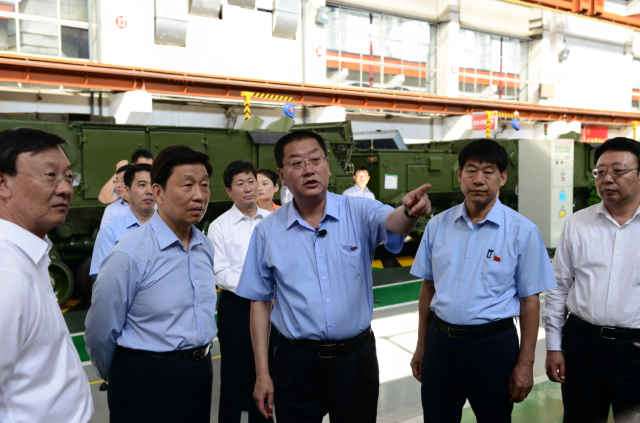 圖為李源潮(左二)在一機集團調研。 9月3日下午,中共中央政治局委員、國家副主席李源潮在內蒙古自治區(qū)黨委副書記、政法委書記李佳,包頭市委副書記、代市長趙江濤等陪同下到中國兵器工業(yè)集團內蒙古第一機械集團有限公司調研。 調研過程中,一機集團董事長、黨委書記白曉光向李源潮詳細介紹了一機集團60多年來的發(fā)展歷程、獲得的主要榮譽和軍民品結構等方面情況以及信息化管理和智能制造在總裝生產線上的應用情況。李源潮邊聽介紹邊不時地插話詢問,了解企業(yè)的人員總量、各種產品技術性能特點、生產管理水平等情況。當了解到一機集團作為我國唯一的主戰(zhàn)坦克和8×8輪式戰(zhàn)車研制生產基地,并為我國裝甲裝備的建設做出了重要貢獻后,連聲說:“你們一機了不起,很了不起?!?/p> 來到國家級技能大師工作室駐軍品總裝工作站,李源潮與技能大師盧仁峰和張學海親切握手交談。當得知大國工匠盧仁峰在克服自身殘疾的情況下不僅練就了精湛的焊接技藝,而且還為公司培養(yǎng)了許多年輕的焊接技術人才時,高興地握著盧仁峰的手說:“好啊,你很不容易啊,大家都要向你學習?!崩钤闯边€親切地詢問了工作站每一位青年職工的學習、工作、生活情況??吹竭@些青年職工飽滿的精神狀態(tài)時,李源潮動情地說:“勞動者最光榮,你們是第一線的勞動者,是真正為國家做出貢獻和創(chuàng)造價值的。你們年輕人一定要把大國工匠和勞動模范的班接好,為企業(yè)、為國家多做貢獻?!?/p> “你們公司現在有多少名團員青年,平時團組織都有什么活動?”在五分公司503車間團支部建設園地前,李源潮仔細詢問了解一機集團的共青團工作開展情況。他還非常認真地從公司團干部手機中仔細了解了一機集團團委落實團中央“1+100”團干部聯系青年制度的開展情況,勉勵團干部改進作風,更好地直接聯系服務青年。 在總裝生產線,李源潮興致勃勃地登上公司最新研制生產的99A坦克,向白曉光詳細詢問了坦克自動裝彈系統(tǒng)、防護性能、火炮威力等各項戰(zhàn)技指標情況。 在五分公司觀禮臺前,三輛不同型號鐵甲戰(zhàn)車轟鳴著駛過,李源潮高興地不停鼓掌。隨后,李源潮還認真了解了現場擺放的各種型號的裝甲戰(zhàn)車的有關情況。 調研結束時,李源潮握著白曉光的手說,“謝謝一機集團的干部職工為我國國防事業(yè)做出的重要貢獻,請代我向全體干部職工問好”。(朱小萌)