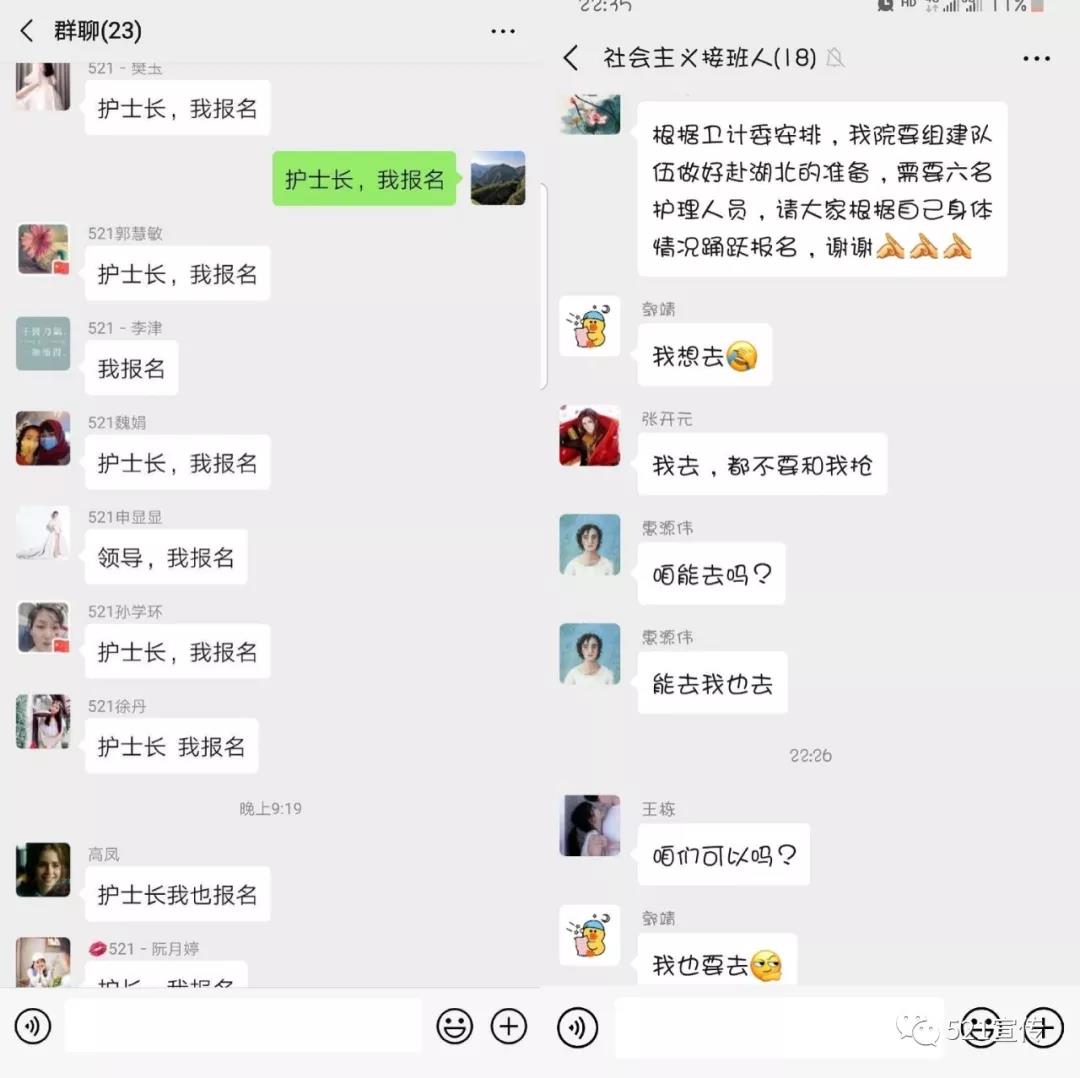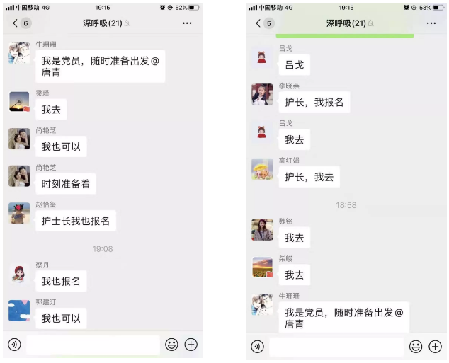 疫情就是命令!接到通知后,醫(yī)院護理部、院感處、醫(yī)務(wù)處立即動員部署,面對自愿報名申請,521醫(yī)院的醫(yī)護人員沒有退縮,大家紛紛秒回“我報名”,爭取上前線支援,斬釘截鐵的三個字表明了他們的態(tài)度和決心,8名醫(yī)護人員按時上報西安市衛(wèi)健委,進入陜西省第二批醫(yī)療隊待命,以實際行動為湖北疫情防控做貢獻!