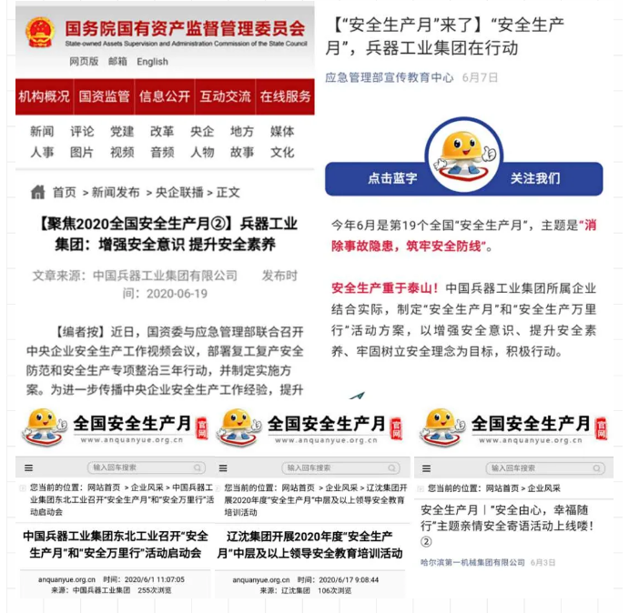 “安全生產(chǎn)月”期間,中國(guó)兵器工業(yè)集團(tuán)深入學(xué)習(xí)貫徹習(xí)近平總書記關(guān)于安全生產(chǎn)的重要論述精神,統(tǒng)籌謀劃、周密組織、廣泛動(dòng)員、大力宣傳,各項(xiàng)活動(dòng)成效顯著,進(jìn)一步推動(dòng)了集團(tuán)公司安全生產(chǎn)管理水平的持續(xù)提升,切實(shí)達(dá)到了以活動(dòng)促工作、以活動(dòng)保安全的目的。
