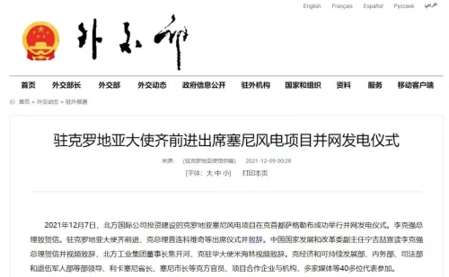 2021年12月7日,中國兵器工業(yè)集團有限公司北方公司所屬北方國際投資、建設和運營的塞尼156MW風電項目在克羅地亞首都薩格勒布隆重舉行并網(wǎng)發(fā)電儀式。李克強總理致賀信。克羅地亞總理安德烈·普連科維奇,中國駐克羅地亞大使齊前進出席儀式并致辭。中國國家發(fā)展和改革委員會副主任寧吉喆宣讀李克強總理賀信并視頻致辭,中國兵器工業(yè)集團有限公司董事長焦開河、克駐華大使米海林視頻致辭。 中華人民共和國外交部報道 普連科維奇總理在致辭中表示,感謝李克強總理發(fā)來賀信,他與中國領導人一直非常重視塞尼風電項目投資與建設。祝賀項目克服疫情與地震等影響,成功并網(wǎng)發(fā)電。增加清潔可再生能源、綠色電力對克乃至歐洲都很重要,克政府的重要戰(zhàn)略和目標之一就是低碳發(fā)展和增加清潔能源供應。塞尼風電項目占克總發(fā)電量將達3.5%,對克實現(xiàn)2022年可再生能源比例30%目標具有很大幫助。此次投資使北方國際成為在克最大的清潔能源投資企業(yè)。非常歡迎更多中國企業(yè)擴大對克投資。 寧吉喆宣讀李克強總理賀信并視頻致辭時表示,2017年11月第六次中國—中東歐國家領導人會晤期間,在李克強總理和普連科維奇總理等中東歐16國領導人的共同見證下,塞尼項目簽署了協(xié)議。項目既是中國堅定踐行綠色發(fā)展理念的具體體現(xiàn),也是中國深化與克羅地亞、與中東歐國家務實合作的生動實踐。希望中克兩國政府部門,企業(yè)等有關各方共同努力、相互配合,運營好塞尼項目,打造出中歐綠色合作的樣板,帶動兩國務實合作持續(xù)深入發(fā)展,造福兩國人民。 焦開河在致辭時表示,在塞尼項目投入運營之際,李克強總理專門致信祝賀。作為塞尼項目的投資方、建設方、運營方,我們備受鼓舞,深感自豪!未來,中國兵器工業(yè)集團有限公司將繼續(xù)深入貫徹落實習近平總書記重要指示批示精神和李克強總理賀信重要要求,以高標準、可持續(xù)、惠民生為目標,與克方合作伙伴坦誠溝通、攜手并進,進一步推動綠色能源建設,努力打造更多的“一帶一路”標志性、引領性、示范性項目,為鞏固中克戰(zhàn)略合作伙伴關系、推進中克從經(jīng)貿(mào)領域到全方位合作貢獻積極力量。 齊前進祝賀塞尼風電項目順利完工和成功并網(wǎng)發(fā)電。他表示,塞尼風電站項目并網(wǎng)發(fā)電是中克兩國領導人親自關注和推動的成果。作為迄今最大的中國在克投資合作項目,塞尼風電項目是中克和中歐綠色合作的典范,對克提高清潔能源生產(chǎn)消費發(fā)揮著重要作用。項目建設過程中為當?shù)嘏囵B(yǎng)了許多工程、技術和管理人才,帶動了當?shù)仄髽I(yè)發(fā)展,增加了就業(yè)和稅收,促進了當?shù)亟?jīng)濟社會發(fā)展,充分體現(xiàn)了中國對外經(jīng)貿(mào)合作與“一帶一路”倡議秉持的互利共贏、共同發(fā)展的理念,也是中國積極倡導的綠色低碳發(fā)展合作的典范。 塞尼項目位于克羅地亞中部亞得利亞海沿岸,建設總投資1.79億歐元,總裝機容量156MW,采用39臺4MW風力發(fā)電機組設備,風場面積達42.8平方公里。項目正式運營后,預計每年平均發(fā)電超3000小時,貢獻約5.3億度綠色電力,可減少二氧化碳排放約46萬噸,將為克羅地亞促進能源轉型、發(fā)展綠色經(jīng)濟提供強勁助力,貢獻了“中國智慧”“中國方案”。 來源/中華人民共和國外交部、綜合有關報道 |