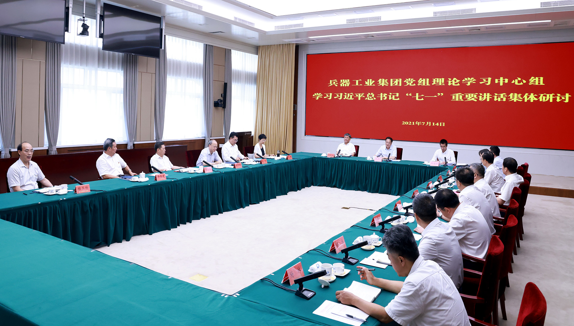 7月14日,中國兵器工業(yè)集團(tuán)有限公司黨組書記、董事長(zhǎng)焦開河主持黨組理論學(xué)習(xí)中心組集體學(xué)習(xí)研討,學(xué)習(xí)貫徹習(xí)近平總書記“七一”重要講話精神,交流學(xué)習(xí)心得體會(huì),結(jié)合集團(tuán)公司改革發(fā)展實(shí)際和各自分管領(lǐng)域、本職工作,研討貫徹落實(shí)思路措施。中央企業(yè)黨史學(xué)習(xí)教育第一指導(dǎo)組副組長(zhǎng)杜國功列席并作指導(dǎo)講話,集團(tuán)公司董事、總經(jīng)理、黨組副書記劉大山,董事、黨組副書記周艦,黨組成員、總會(huì)計(jì)師張華,紀(jì)檢監(jiān)察組組長(zhǎng)、黨組成員陳學(xué)釧,黨組成員、副總經(jīng)理鄒文超、李春建、植玉林參加集體學(xué)習(xí)研討。