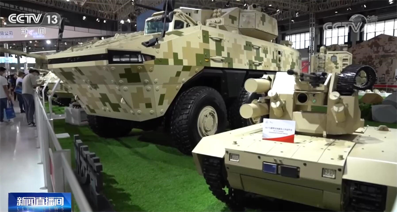 總臺(tái)央視記者 吳天白:我們可以看到,本屆航展兵器館裝備的排列不再是同類(lèi)型裝備相鄰排列,履帶式的坦克就會(huì)搭配輪式無(wú)人車(chē),而輪式裝甲車(chē)就會(huì)配備履帶式無(wú)人車(chē)進(jìn)行輔助,采用了一種“輪履結(jié)合”的組合形式。