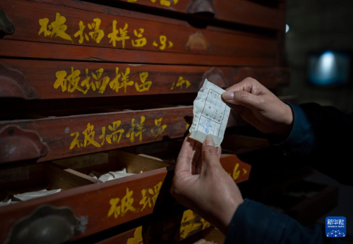是5月16日拍攝的中國光學(xué)歷史博物館內(nèi)收藏的一臺玻璃長刻度機。  5月16日,工作人員在展示玻璃樣品柜內(nèi)的一個玻璃樣品。
