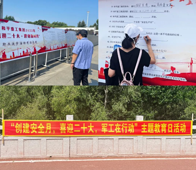 和平重工集團(tuán)在安全生產(chǎn)月期間組織開展了“創(chuàng)建安全月 喜迎二十大 軍工在行動(dòng)”主題教育日活動(dòng),現(xiàn)場(chǎng)懸掛宣傳橫幅標(biāo)語,工作人員為職工們發(fā)放安全知識(shí)宣傳冊(cè)、扇子等宣傳用品,并在現(xiàn)場(chǎng)組織了安全知識(shí)有獎(jiǎng)答題環(huán)節(jié),調(diào)動(dòng)廣大職工參與的積極性,大力營(yíng)造了“關(guān)愛生命、關(guān)注安全”的良好氛圍。
