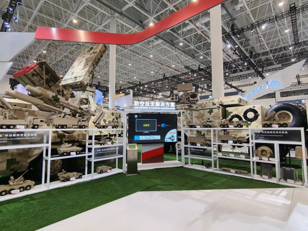 防空反導體系重點展示天龍一體化防空導彈武器系統(tǒng)、激光武器系統(tǒng)、彈炮結合防空武器系統(tǒng)等一系列防空武器,展現(xiàn)該體系點線面兼?zhèn)?,為防護單位構建起“金鐘罩”“鐵布衫”的防護效果。