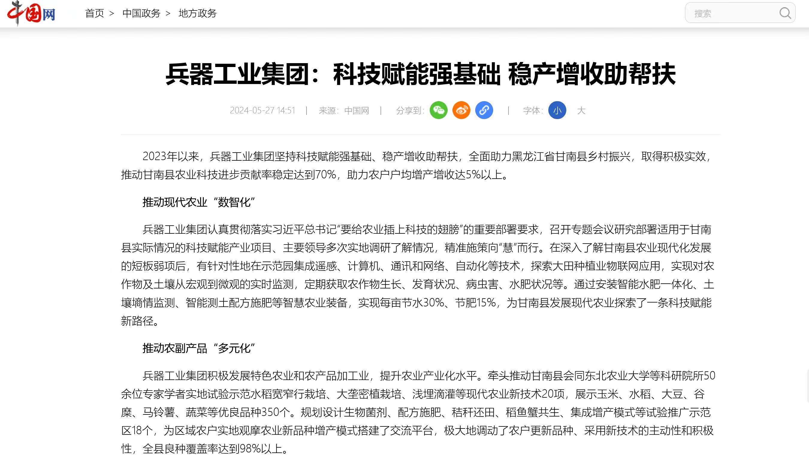 中國(guó)網(wǎng)報(bào)道兵器工業(yè)集團(tuán)科技賦能 助力黑龍江省甘南縣鄉(xiāng)村振興 |