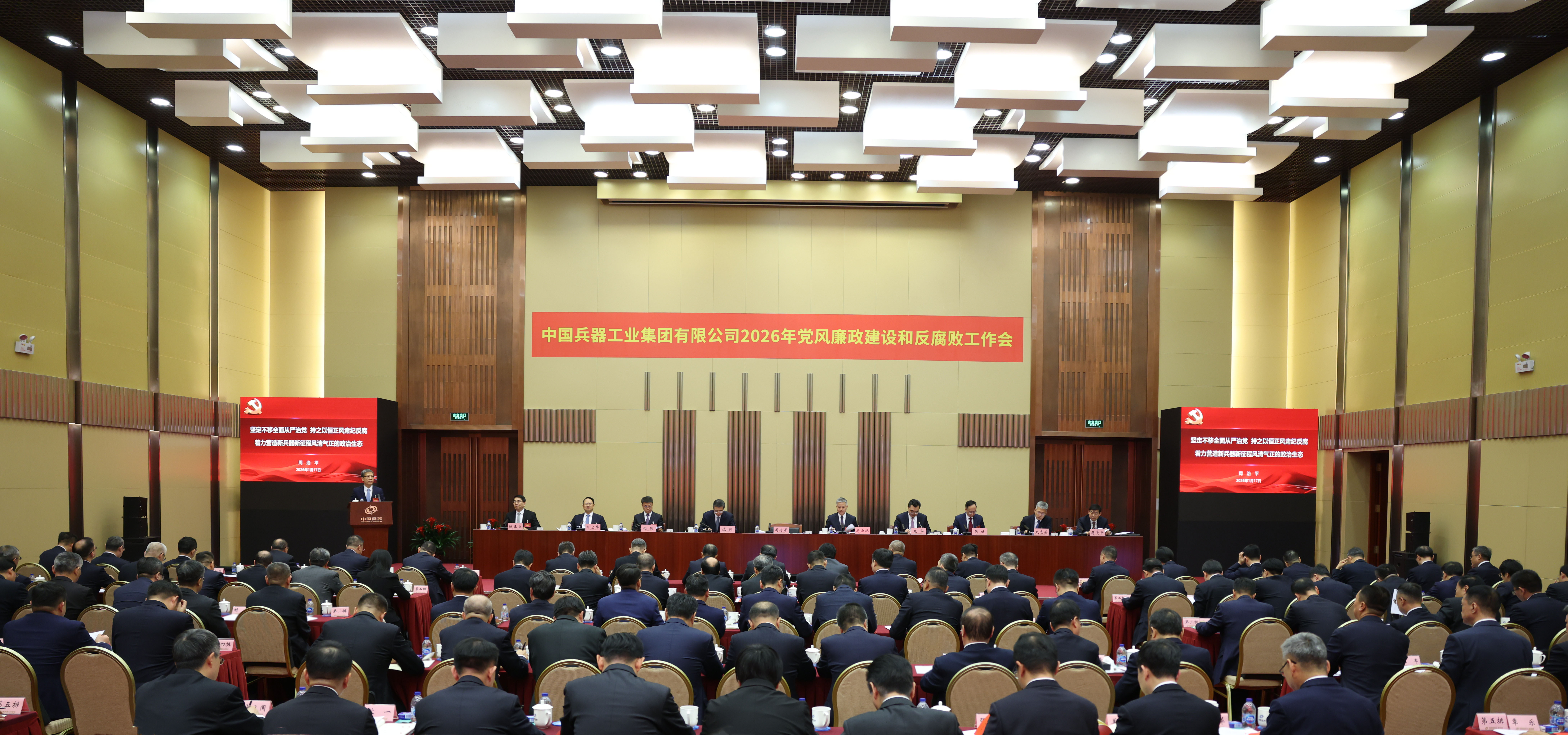 1月17日,中國兵器工業(yè)集團有限公司召開2026年黨風(fēng)廉政建設(shè)和反腐敗工作會議,會議以習(xí)近平新時代中國特色社會主義思想為指導(dǎo),深入學(xué)習(xí)貫徹黨的二十大和二十屆四中全會精神,全面貫徹落實二十屆中央紀(jì)委五次全會精神,總結(jié)工作、部署任務(wù),以更高標(biāo)準(zhǔn)、更實舉措推進全面從嚴(yán)治黨,為實現(xiàn)集團公司“十五五”時期目標(biāo)任務(wù)提供堅強保障。集團公司黨組書記、董事長周治平作了《堅定不移全面從嚴(yán)治黨,持之以恒正風(fēng)肅紀(jì)反腐,著力營造新兵器新征程風(fēng)清氣正的政治生態(tài)》的講話,并與集團公司各部門、各子集團和直管單位簽訂《黨風(fēng)廉政責(zé)任書》。駐集團公司紀(jì)檢監(jiān)察組組長、集團公司黨組成員陳正云傳達(dá)了二十屆中央紀(jì)委五次全會精神,通報了駐集團公司紀(jì)檢監(jiān)察組2025年重點工作和查處典型案件暴露出來的問題并提出意見要求。集團公司總經(jīng)理、黨組副書記馬云雙主持會議。